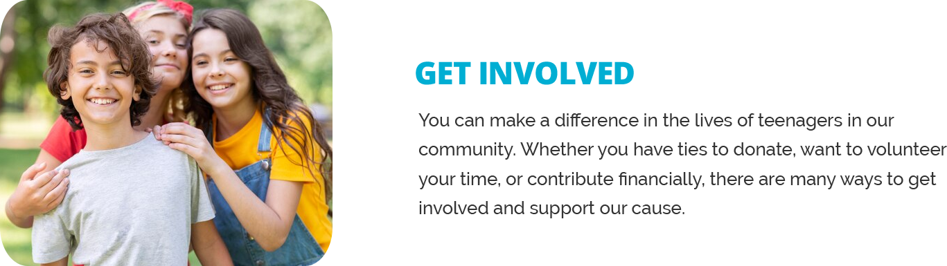 You can make a difference in the lives of teenagers in our community. Whether you have ties to donate, want to volunteer your time, or contribute financially, there are many ways to get involved and support our cause.